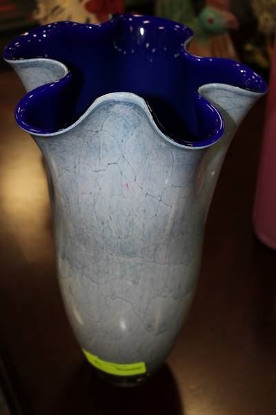 ESTATE BLUE AND WHITE FLUTED GLASS VASE