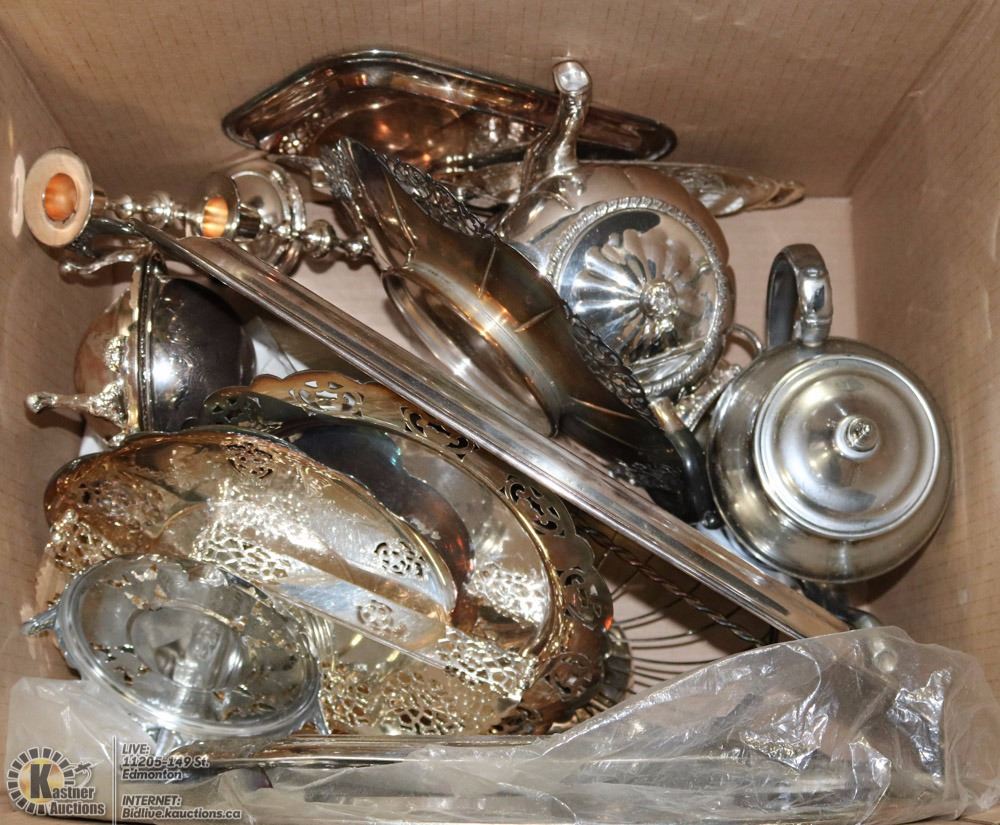 ESTATE BOX OF ASSORTED METAL SERVING DISHES