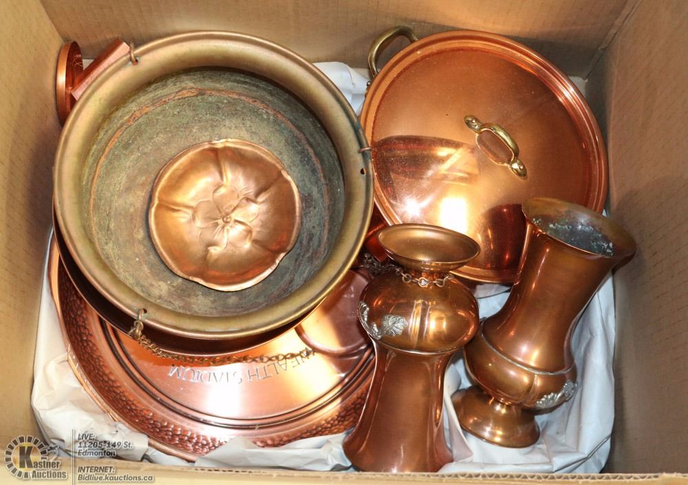 ESTATE BOX OF COPPER ITEMS