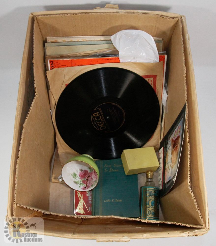 ESTATE BOX OF RECORDS & COLLECTIBLES