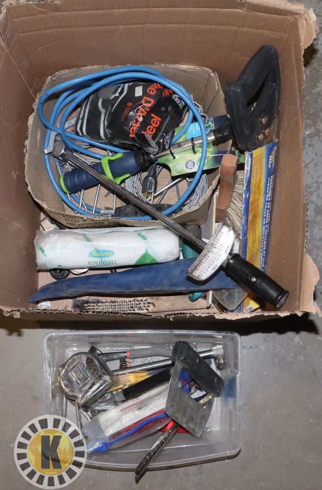 BOX INCLUDES: TORQUE WRENCH, TAPE MEASURE, SAW, STRAP, METAL BRUSH, ROLLER, LED MARKER LAMP AND MORE***ITEM(S) LOCATED IN LETHBRIDGE ALBERTA