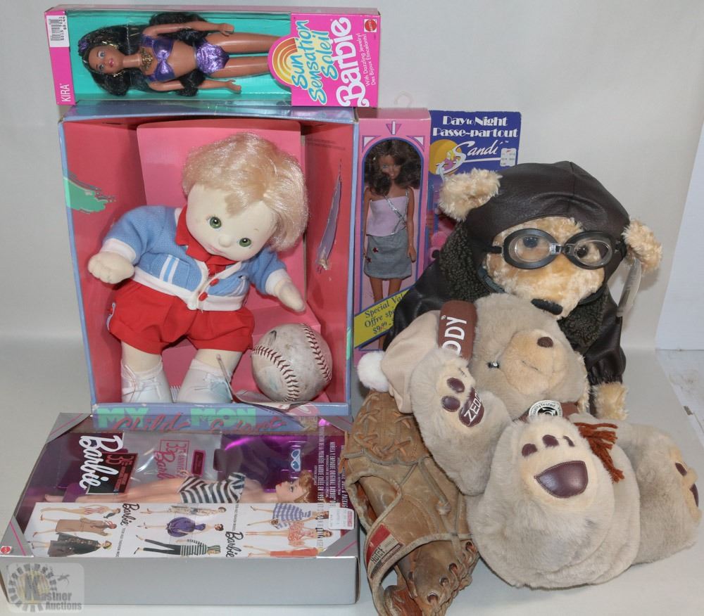 ANNIVERSARY SPECIAL EDITION BARBIE, FINE TOYS PILOT TEDDY BEAR WITH TAGS AND MORE