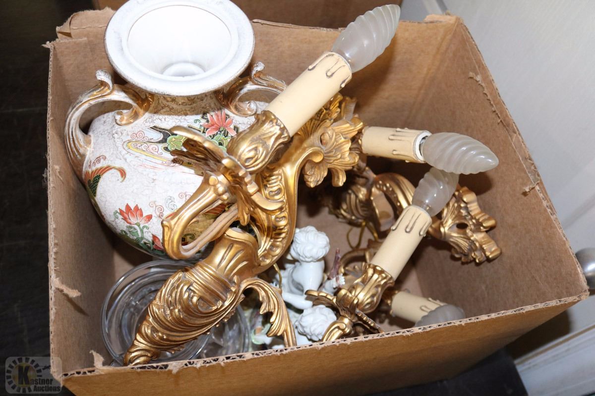 ESTATE BOX WITH WATER PITCHER, VASE(CRACKED), ETC.