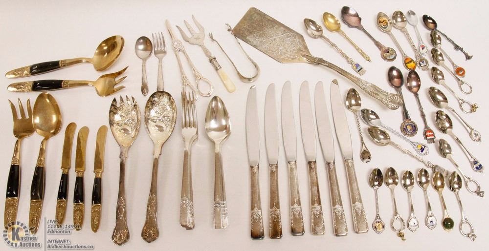 FLATWARE SOLD WITH COLLECTOR SPOONS (SOME SILVERPLATED)