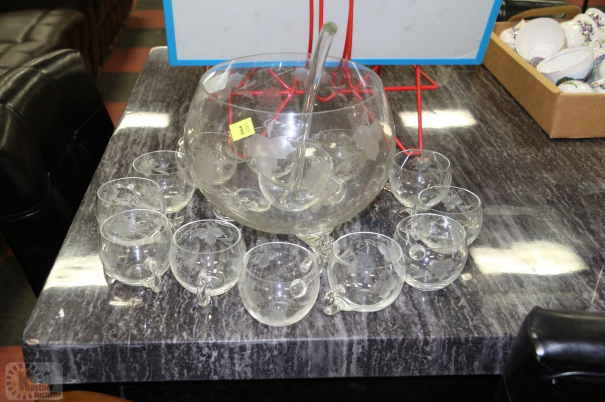 ESTATE CRYSTAL GLASS PUNCH BOWL SET