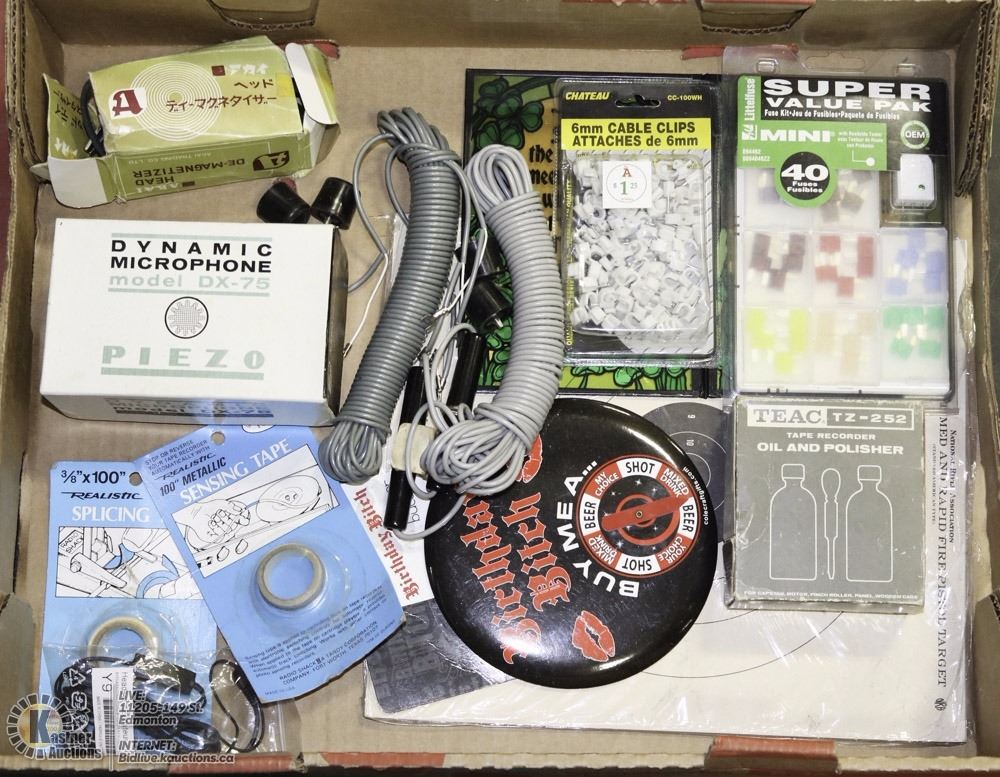 TEAC OIL AND POLISHER , SENSING TAPE , SPLICING TAPE , DYNAMIC PIEZO , HEAD DEMAGNETIZER, FUZES , CABLE CLIPS