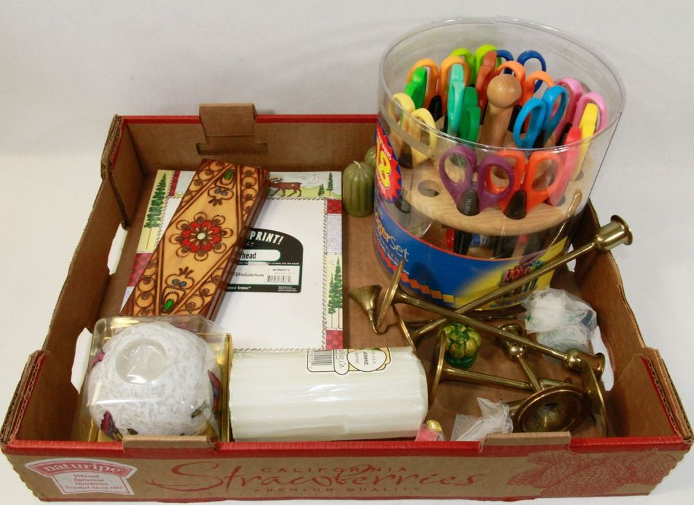 ESTATE FLAT OF CANDLES BRASS AND CRAFTING SCISSORS