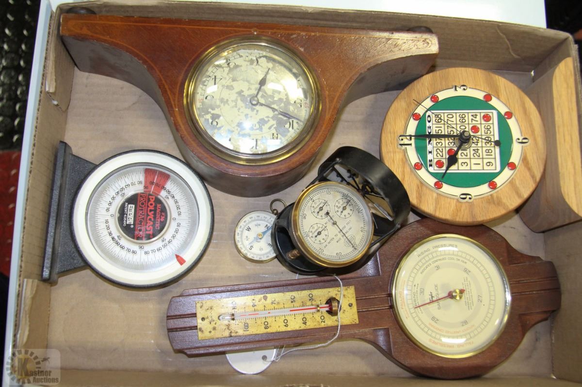 ESTATE FLAT WITH ASST. CLOCKS, GAUGES ETC