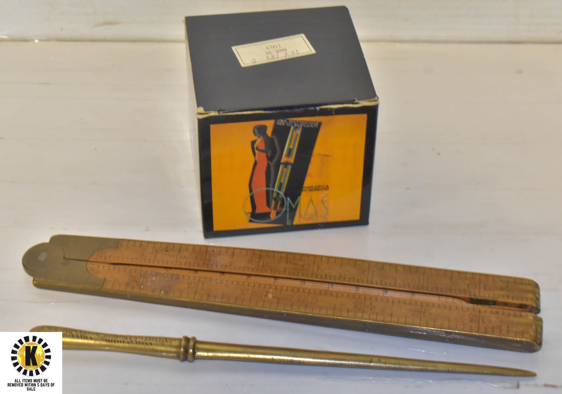 ESTATE FOUNTAIN PEN INK, ANTIQUE RULER, & OLD