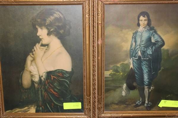 ESTATE FRAMED BLUE BOY AND LADY PICTURES