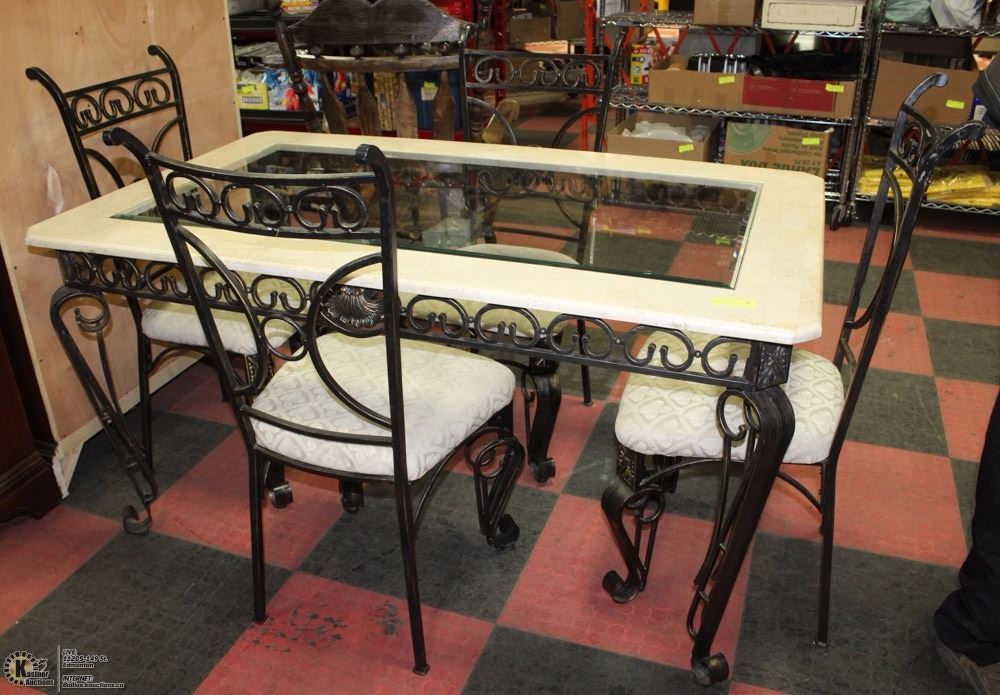 DINING TABLE W/4 MATCHING PADDED CHAIRS (60"L X 36"W X 31.5"H) - HOUSEHOLD
