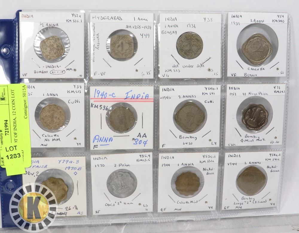 ESTATE LOT OF INDIA, 12 COIN LOT MIXED