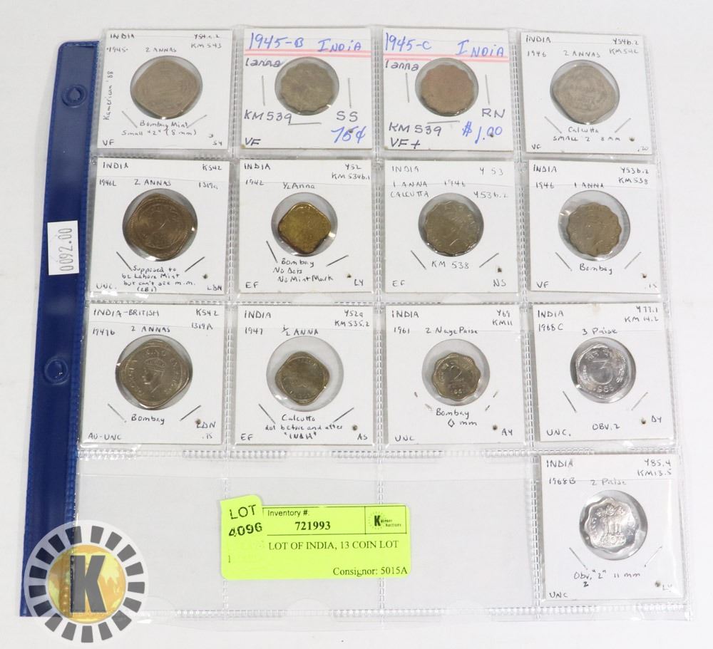 ESTATE LOT OF INDIA, 13 COIN LOT MIXED