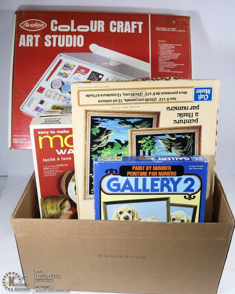 1-VELVET PAINTING, 1-ANIMAL PAINTING, LARGE ART STUDIO COLOUR CRAFT SET.