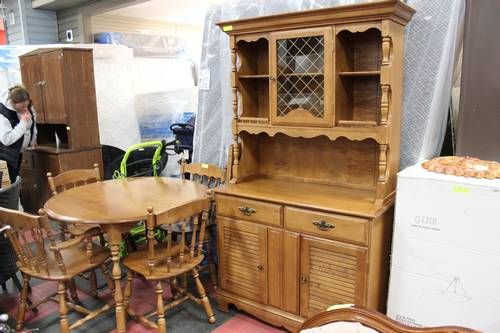 ESTATE MAPLE HUTCH W TABLE 2 LEAVES AND 4 CHAIRS
