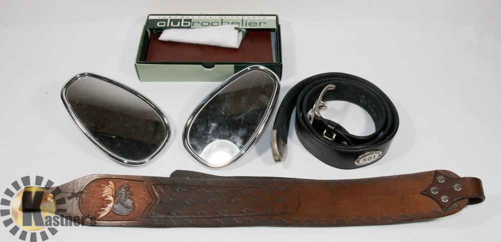 MOTORCYCLE MIRRORS, LEATHER BELTS , NEW WALLET