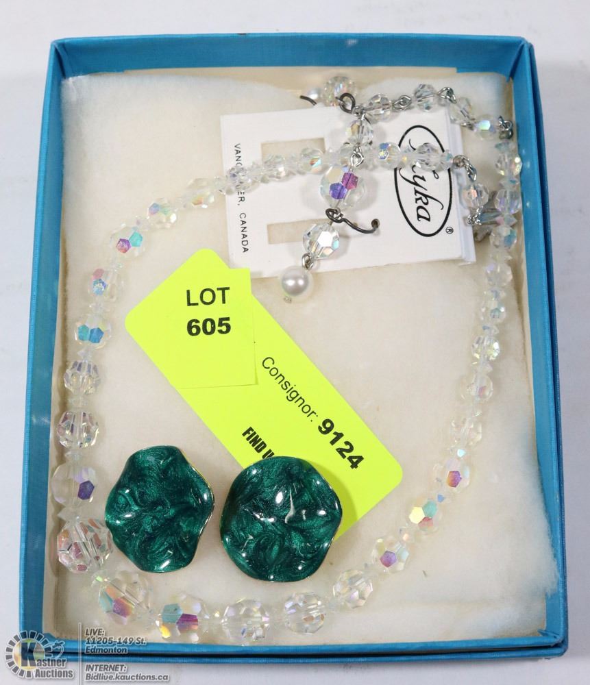 ESTATE NECKLACE WITH ENAMEL EARRINGS
