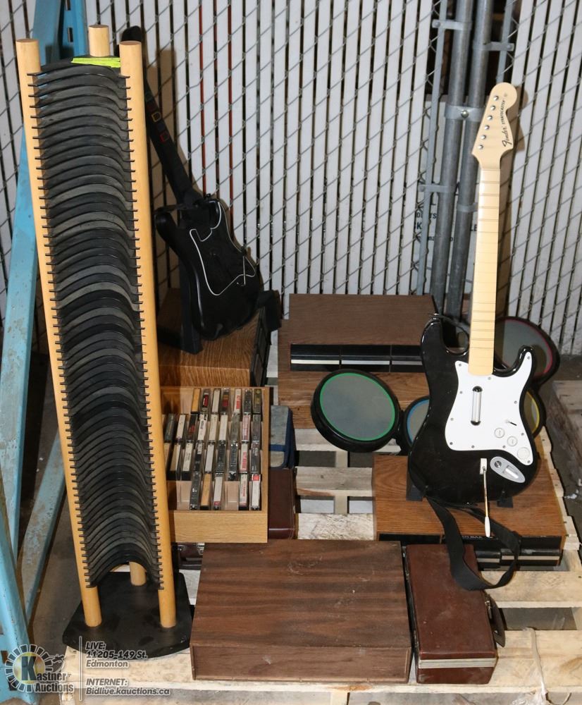 INCL 2 COLLECTIBLE GUITAR HERO GUITARS ON STANDS AND GUITAR HERO DRUMS NO LEGS. MUST BE REMOVED BY MONDAY 5:30PM NO EXCEPTIONS
