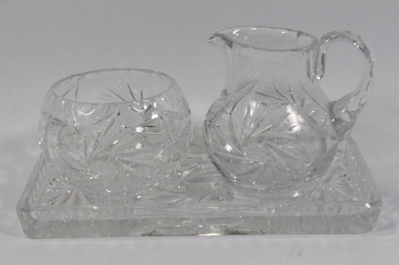 ESTATE PINWHEEL CRYSTAL CREAM & SUGAR SET W / TRAY