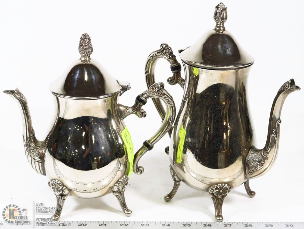 ESTATE SET OF SILVER TONE COFFEE & TEA POTS
