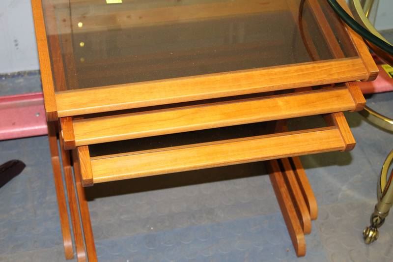 ESTATE TEAK AND GLASS 3 PC NESTING SET