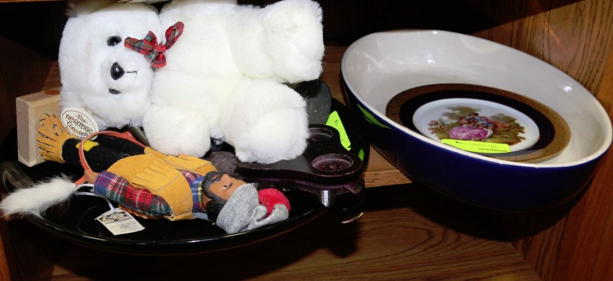 ESTATE TRAY WITH ASSORTED ORNAMENTS
