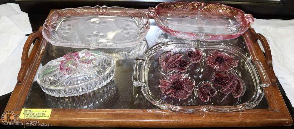 ESTATE TRAY WITH ASST CUT GLASS SERVERS