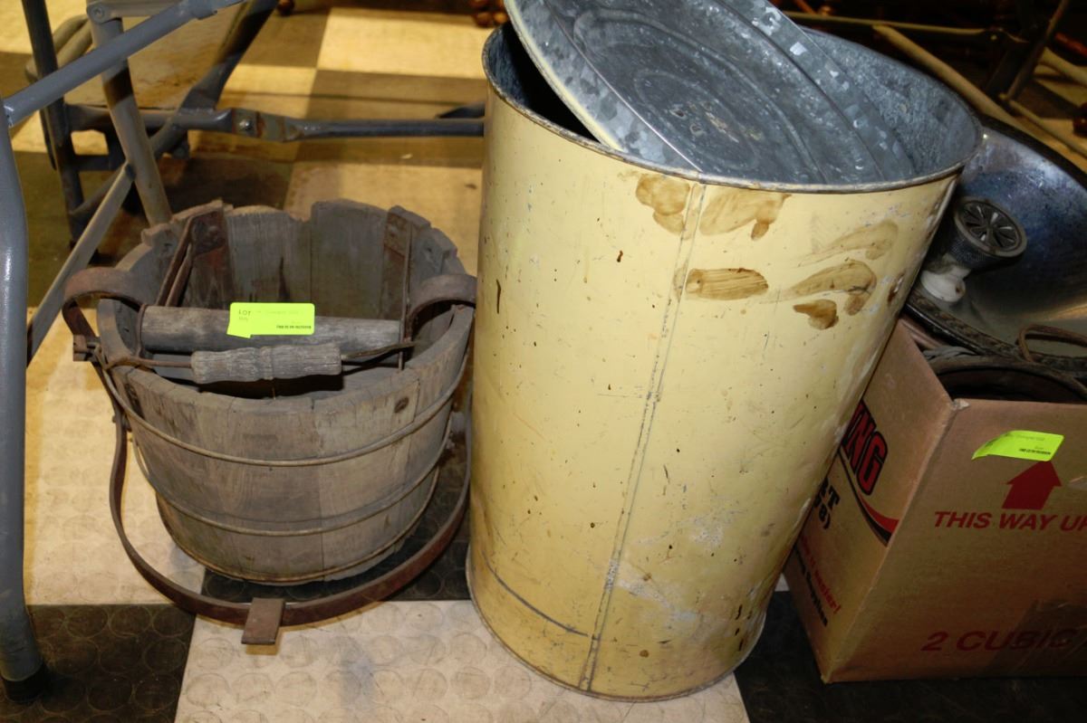 ESTATE VINTAGE TRASH CAN SOLD WITH CLOTHES