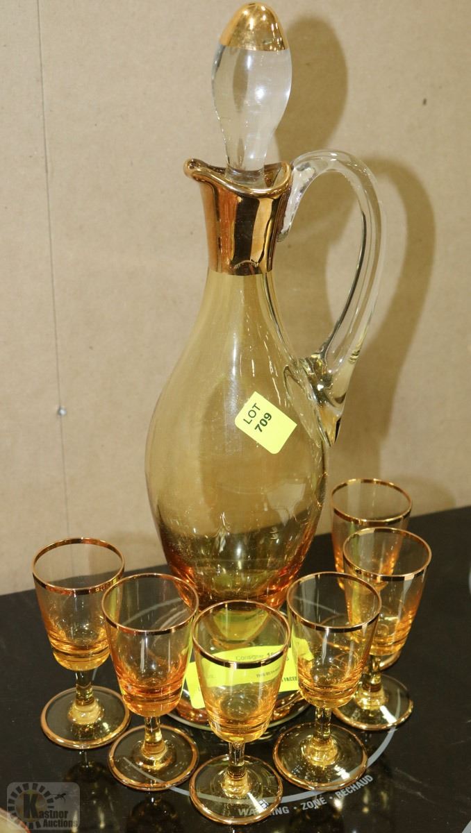 ESTATE VINTAGE YELLOW GLASS DECANTER SET