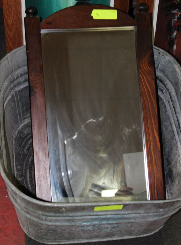 ESTATE WASH TUB W SMALL WOOD FRAMED MIRROR