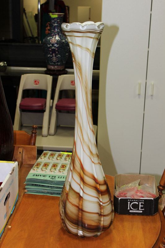 ESTATE WHITE AND BROWN ART GLASS VASE