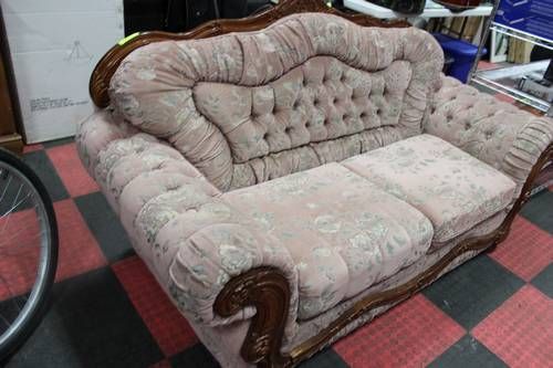 ESTATE WOOD CARVED DUSTY ROSE LOVE SEAT