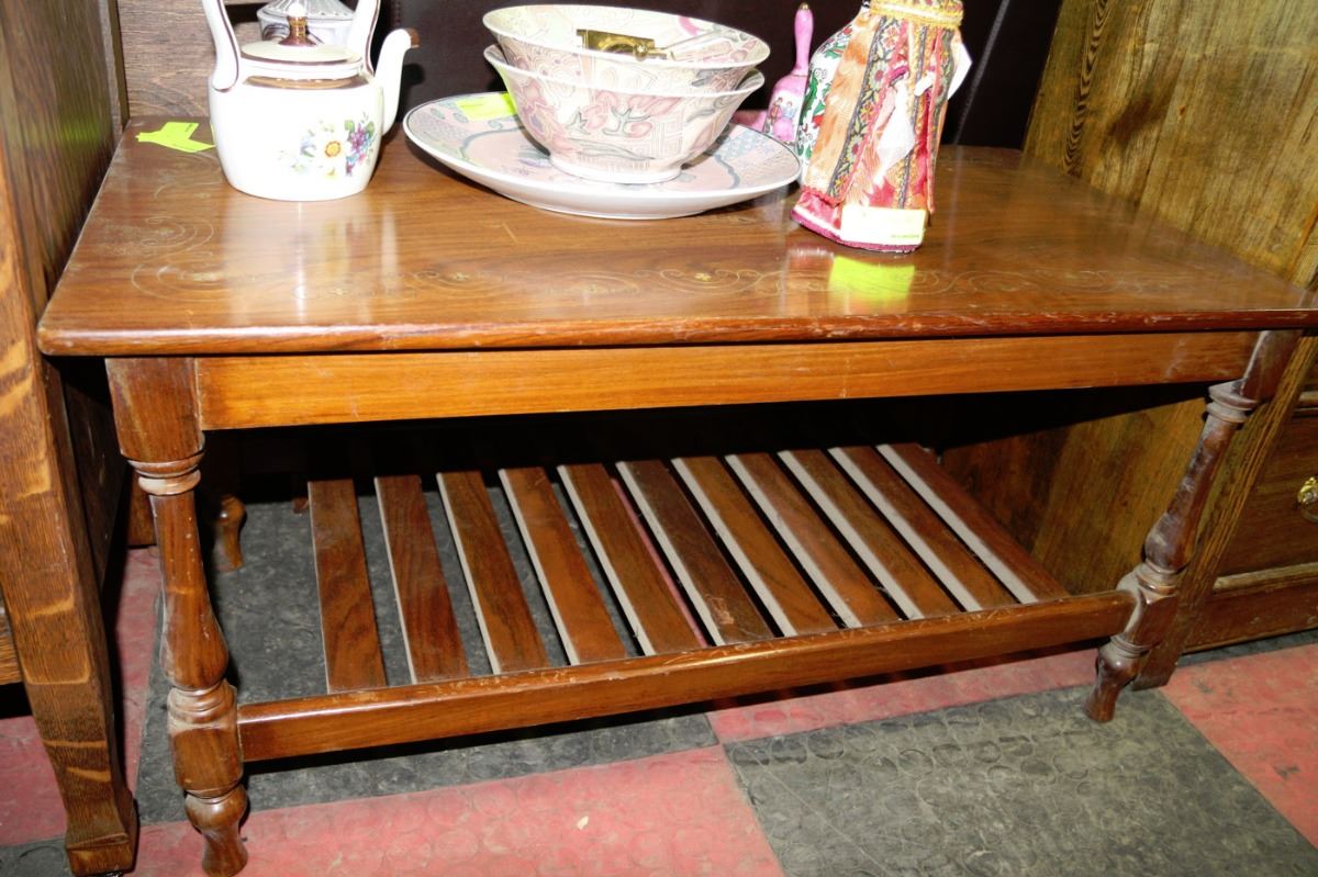 ESTATE WOOD COFFEE TABLE WITH BRASS ACCENTS
