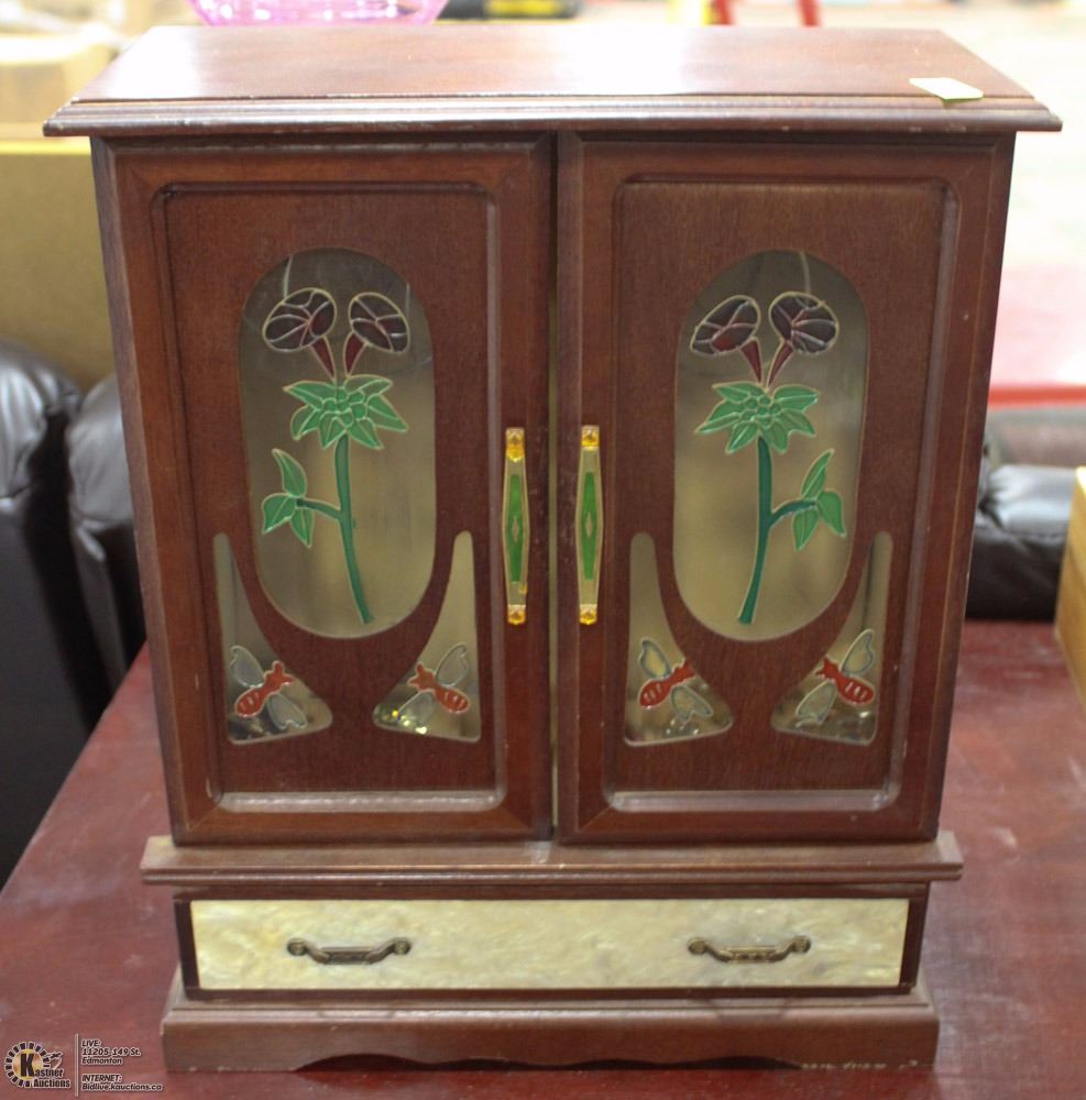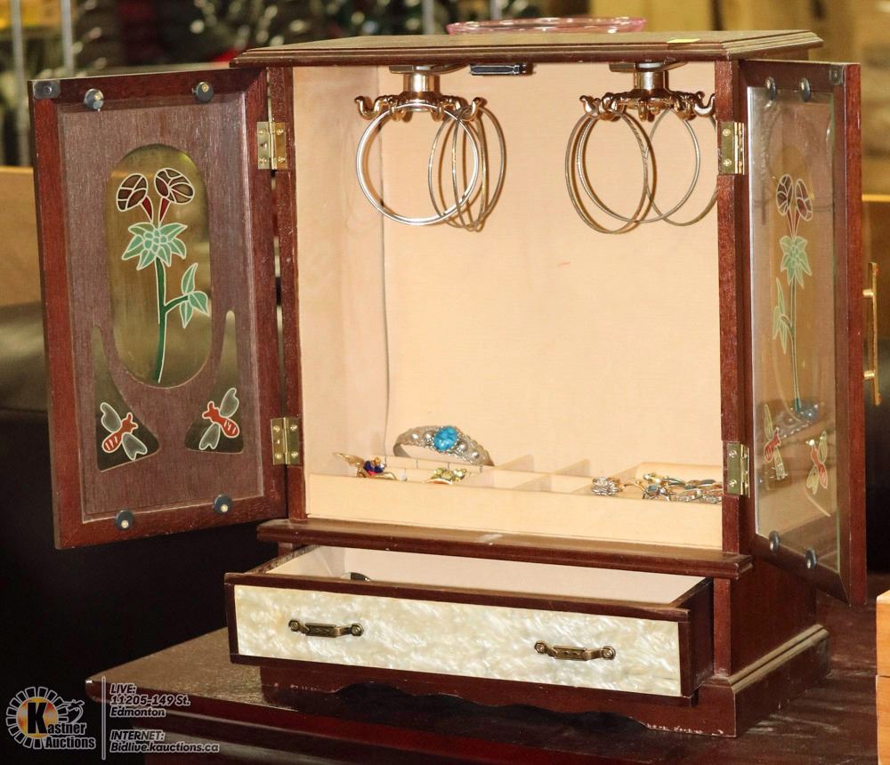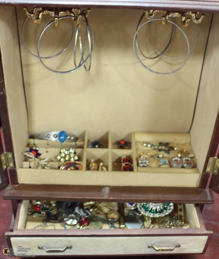 ESTATE WOOD DELUXE JEWELLERY BOX W/CONTENTS