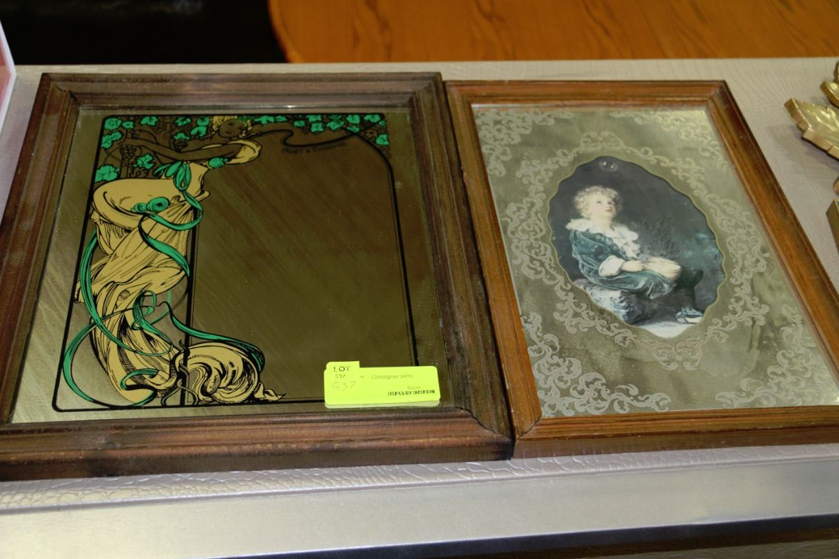ESTATE WOOD FRAMED PICTURE AND MIRROR