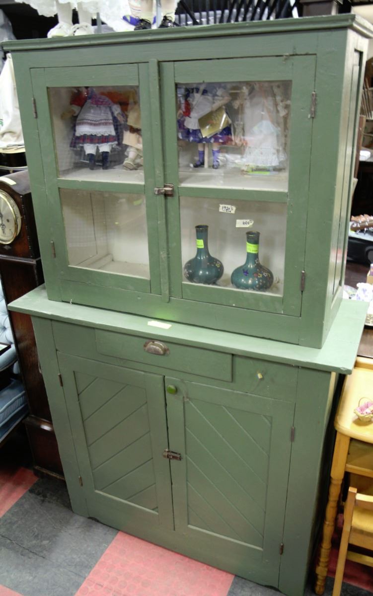 ESTATE WOOD GREEN CABINET WITH HUTCH CIRCA 1920'S