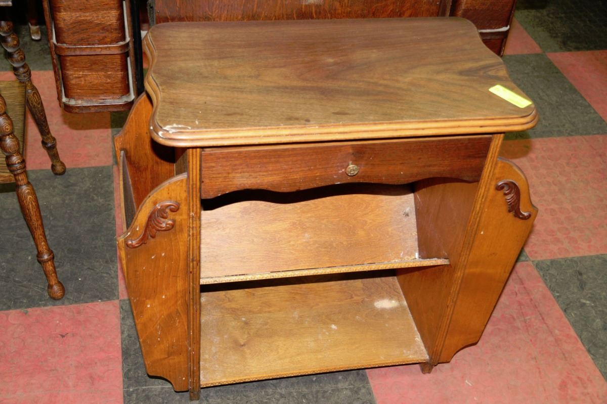 ESTATE WOOD MAGAZINE RACK WITH DRAWER