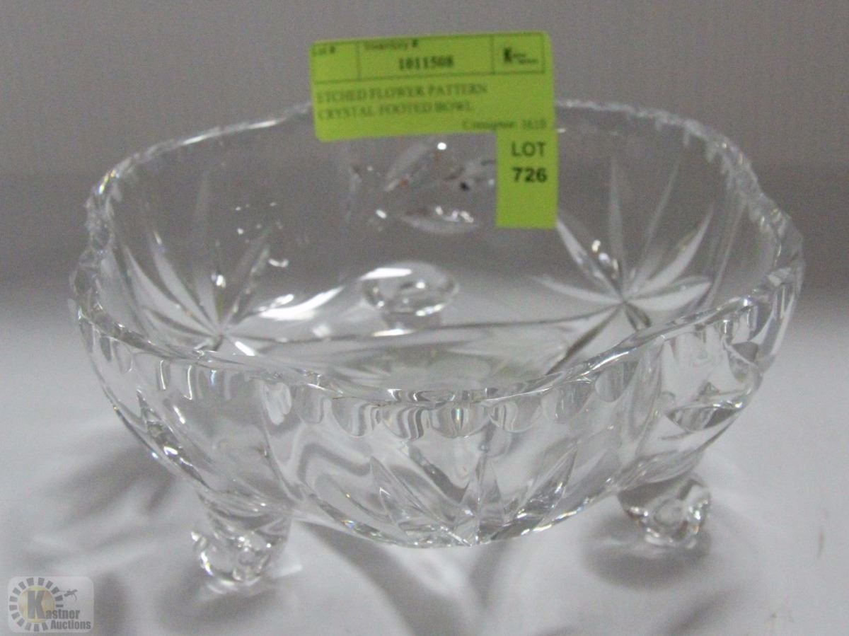 ETCHED FLOWER PATTERN CRYSTAL FOOTED BOWL