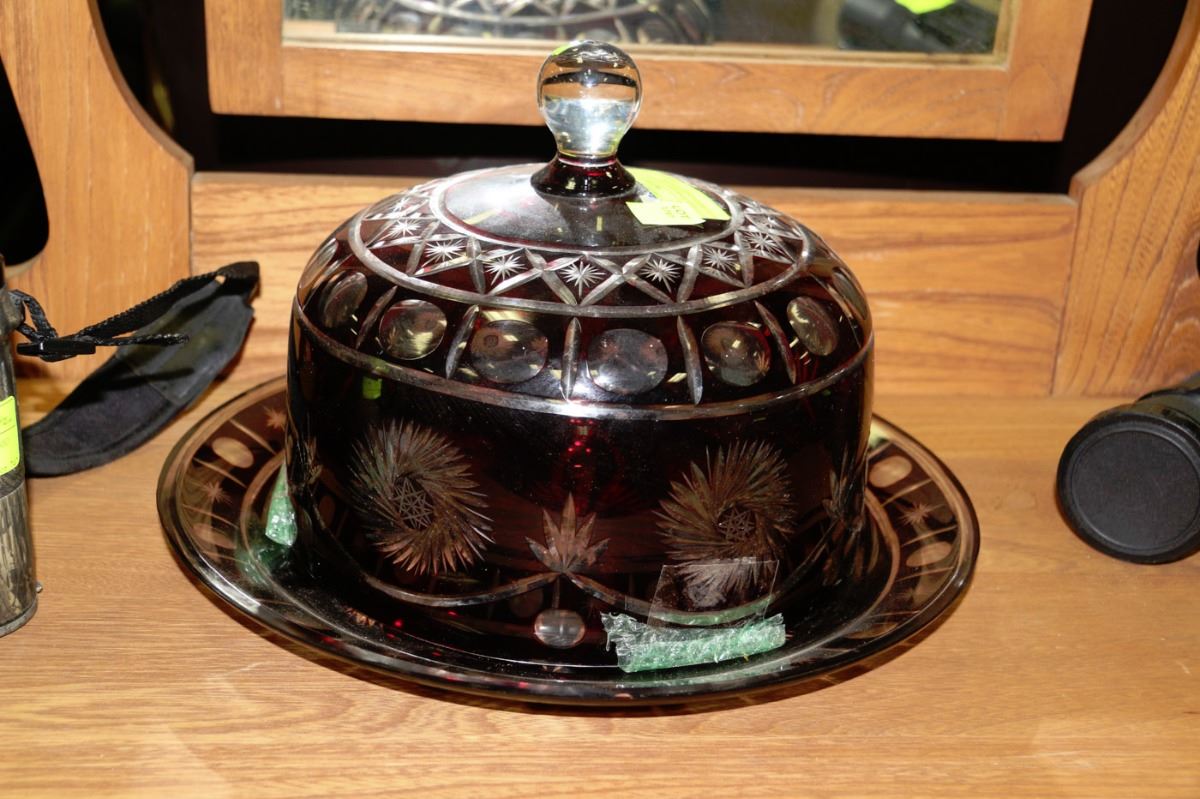 ETCHED PINWHEEL CRYSTAL COLORED CAKE HOLDER