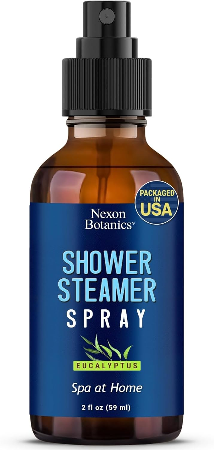 EUCALYPTUS SHOWER STEAMER SPRAY 2 FL OZ - SHOWER AROMATHERAPY SPRAY - EUCALYPTUS SHOWER SPRAY - SAUNA SPA STEAM MIST AT HOME, ROOM - ESSENTIAL OIL SHOWER EUCALYPTUS SPRAY - NEXON BOTANICS