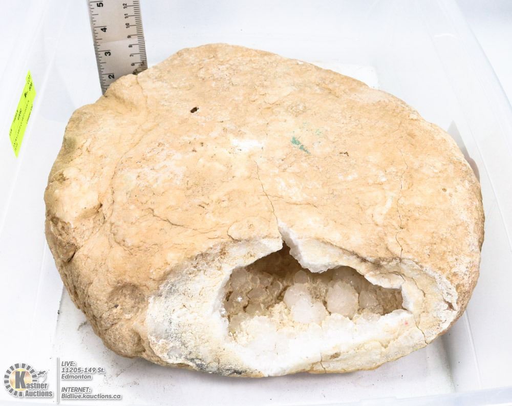EXTRA LARGE QUARTZ GEODE IN TOTE
