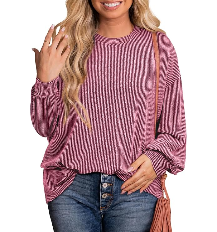EYTINO WOMENS PLUS SIZE SWEATSHIRT CASUAL LONG SLEEVE CREWNECK RIBBED KNIT SHIRTS LOOSE PULLOVER TOPS(1X-5X) | Category: Clothing/Shoes
