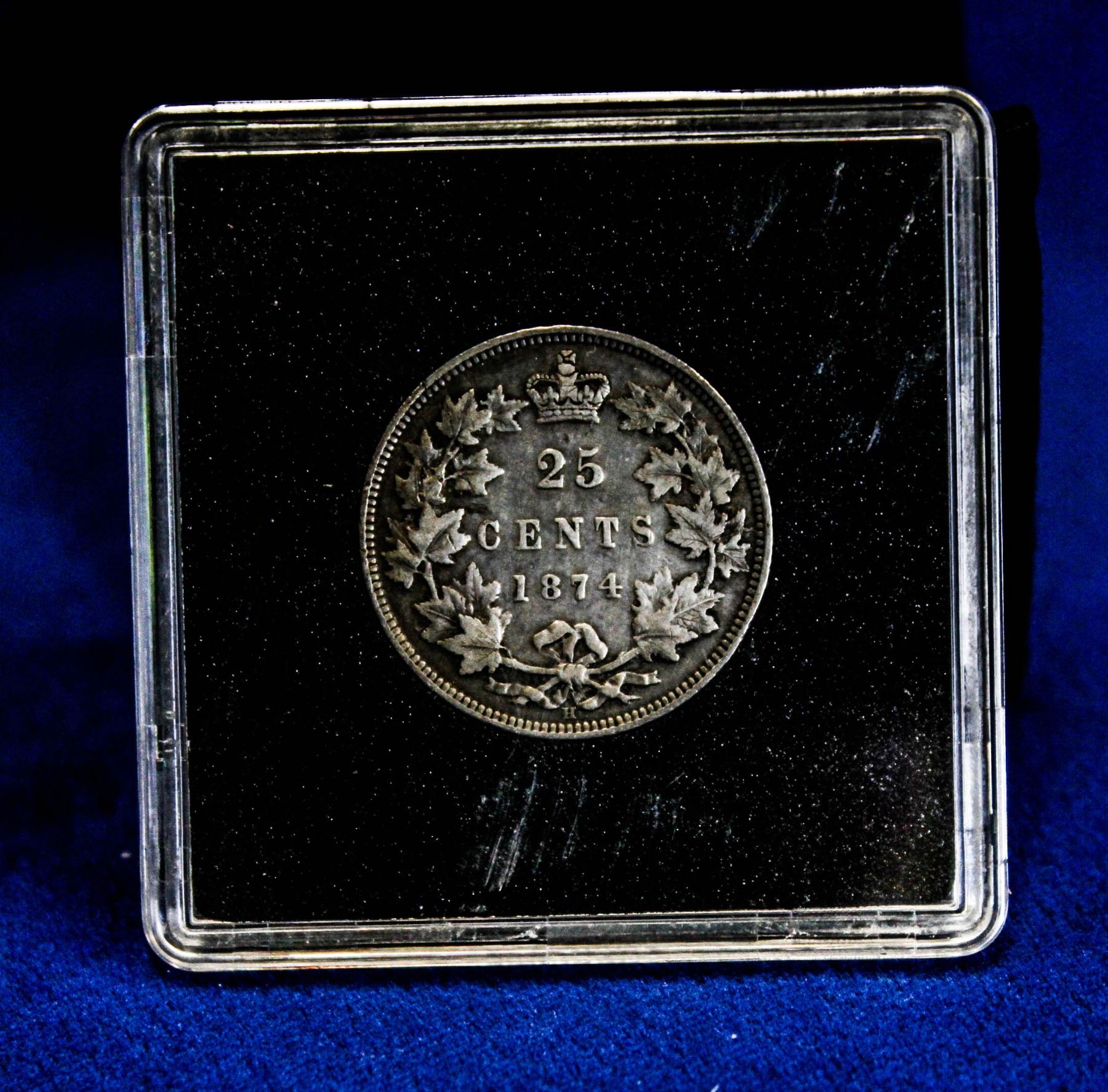 F-VERY FINE CONDITION 1874H CANADA 25 CENT