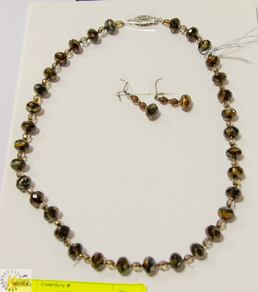 & EARRINGS 18"NECKLACE. 1" DROP EARRINGS. SMOKY QUARTZ ACCENT BEADS. FISH HOOK CLASP. ARTISAN ONE OF A KIND
