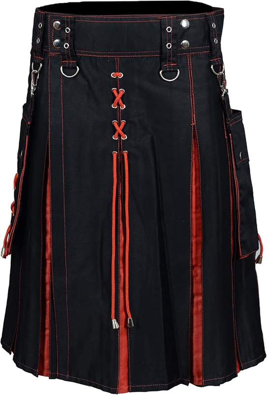 FASHION HYBRID KILT WITH RED LACES PLEATS SCOTTISH TRADITIONAL KILT HIGHLANDER SPORTS UTILITY KILT MENS SKIRT HERITAGE OUTFIT (SIZE:44) | Category: Clothing/Shoes