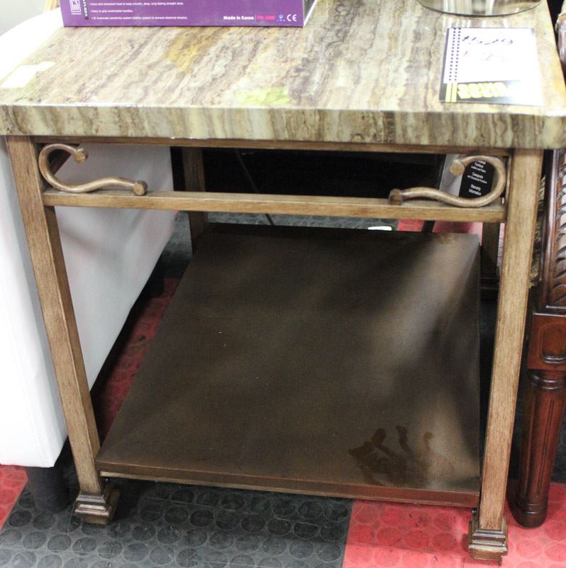 FAUX MARBLE TOP WOOD & METAL END TABLE
