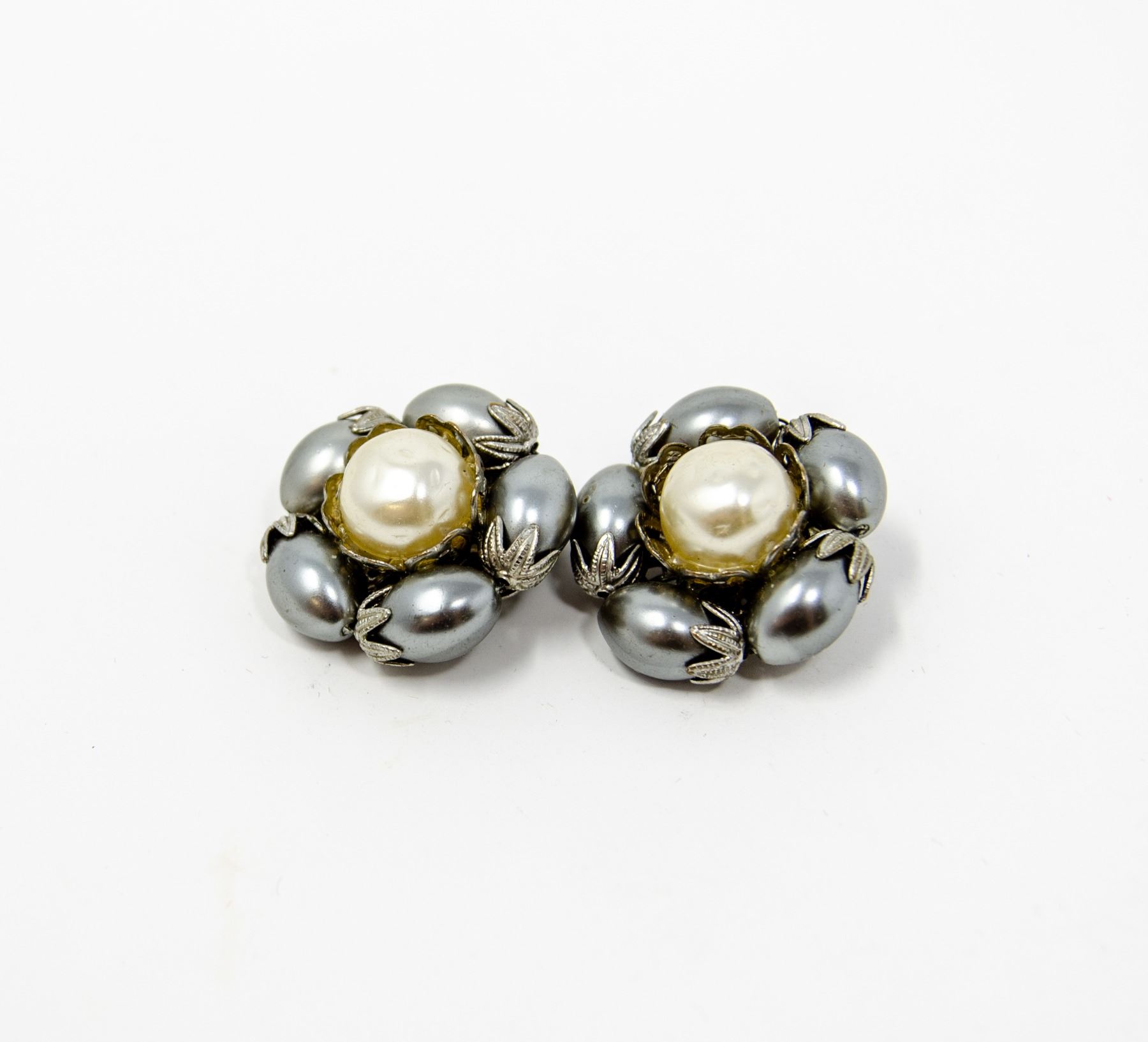 FAUX PEARL GREY AND WHITE CLIP EARRINGS