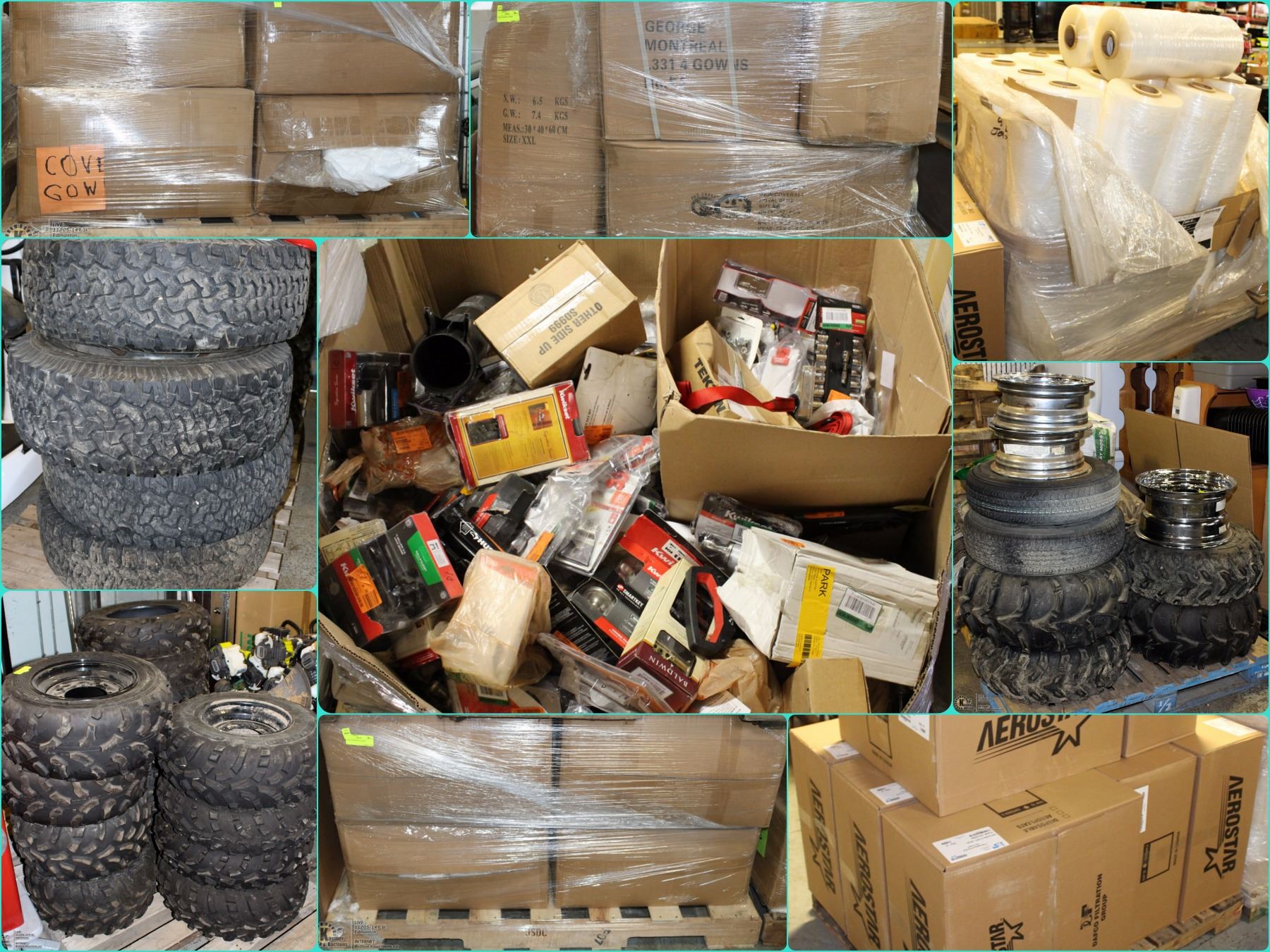 LOT 8642-8645, 8767-8786 PALLETS OF TIRES, STORE RETURNS, ROLLS OF PALLETECH MACHINE FILM, CASES OF AEROSTAR FIBREGLASS AIR FILTERS AND HOSPITAL GOWNS