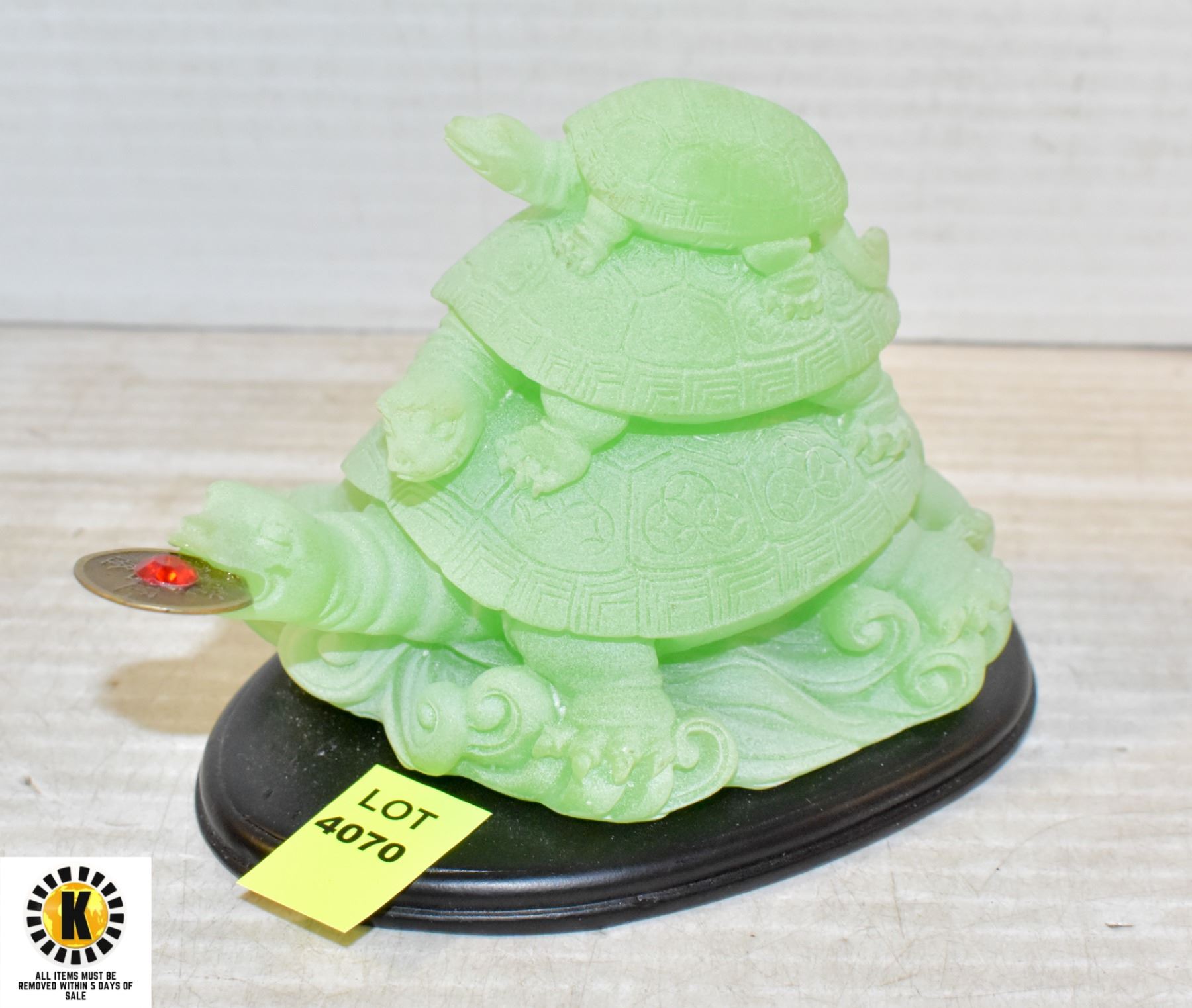 FENG SHUI 3 TIER TURTLE IN JADEITE WITH COIN