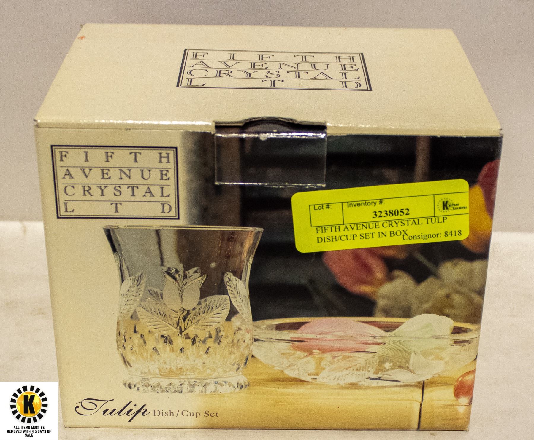 FIFTH AVENUE CRYSTAL TULP DISH/CUP SET IN BOX